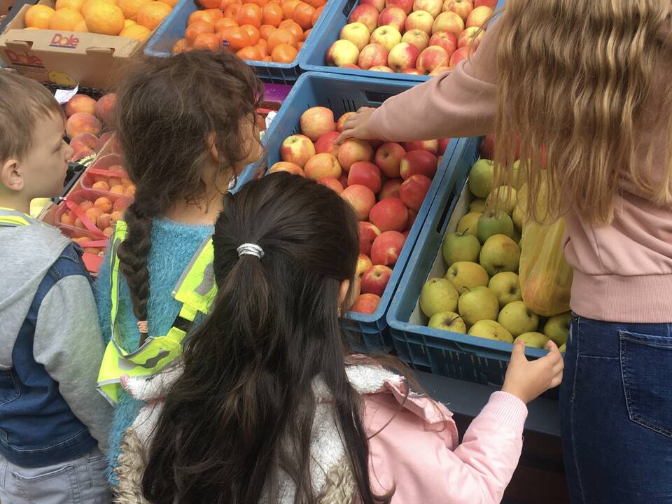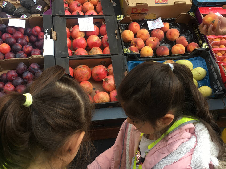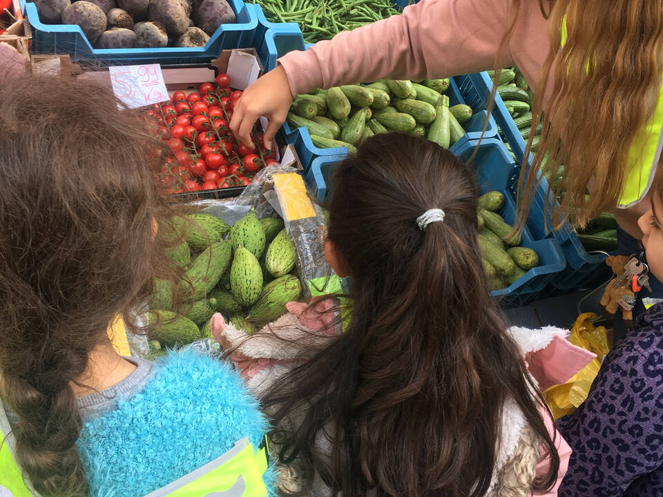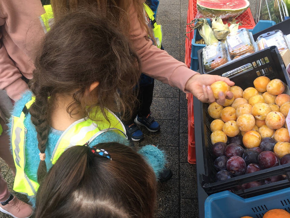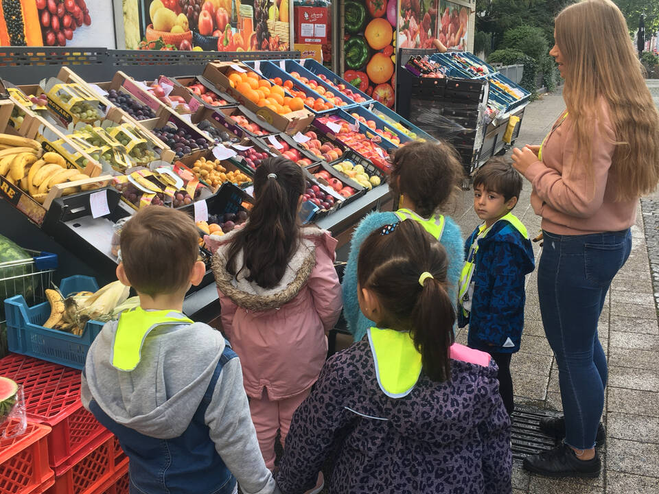 Gesunde Ernährung wird in der inklusiven Kita Europagarten großgeschrieben. Einmal pro Woche geht eine Gruppe auf dem Wochenmarkt oder beim Gemüsehändler frische Lebensmittel einkaufen.