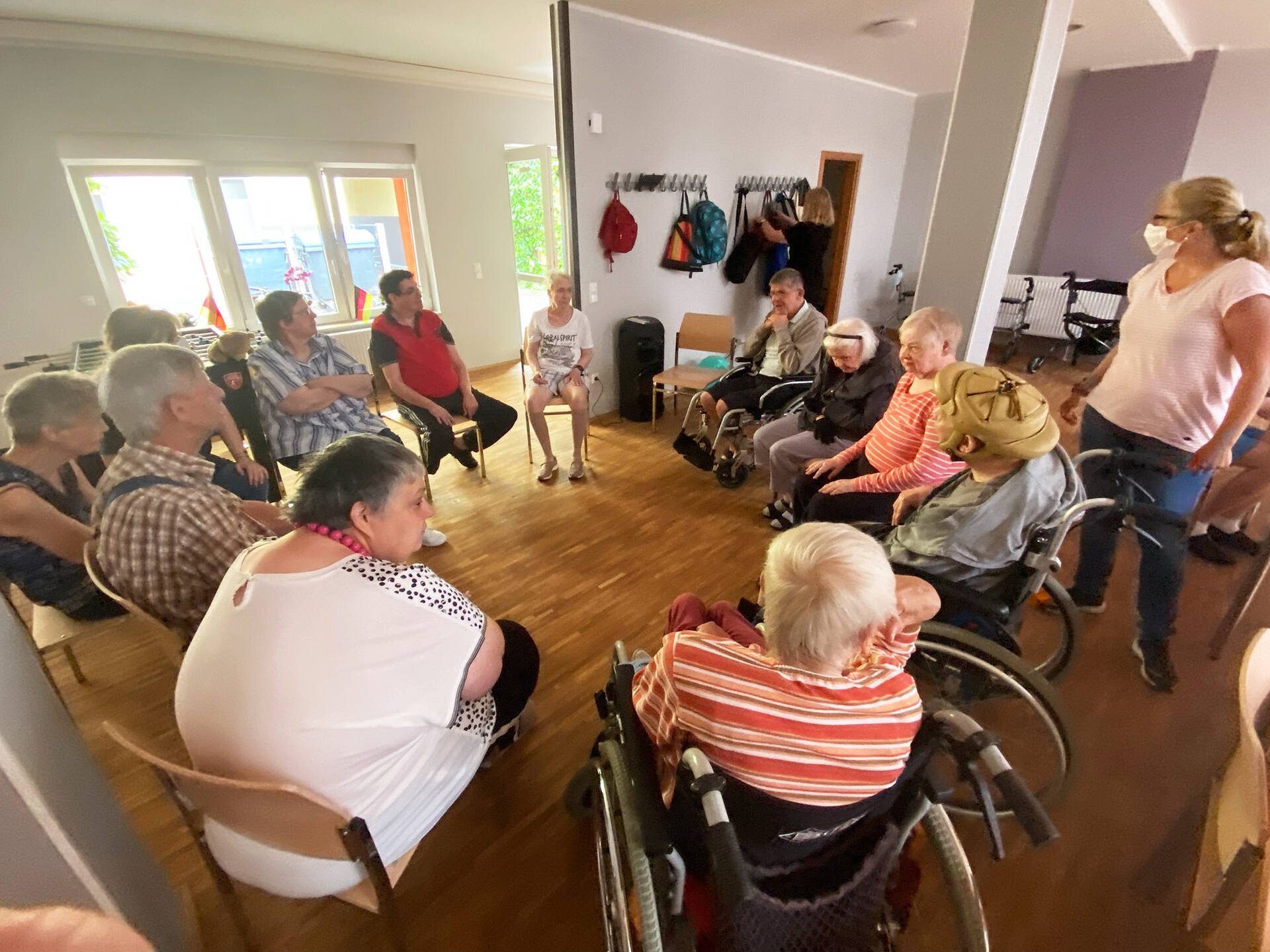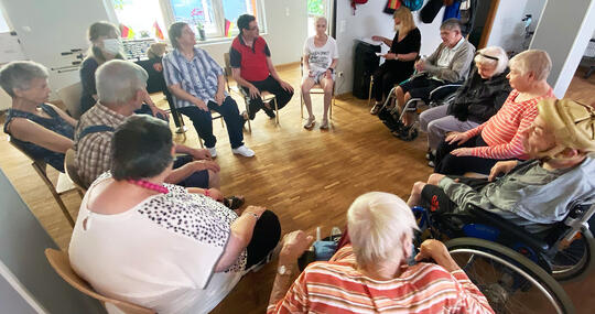 - Bewegungsangebote: Ballspielen, Kegeln, Gymnastikübungen, Sitzgymnastik, Übungen mit dem Schwungtuch