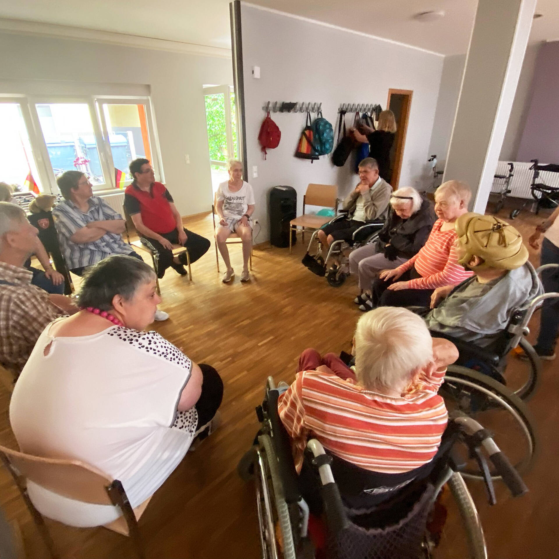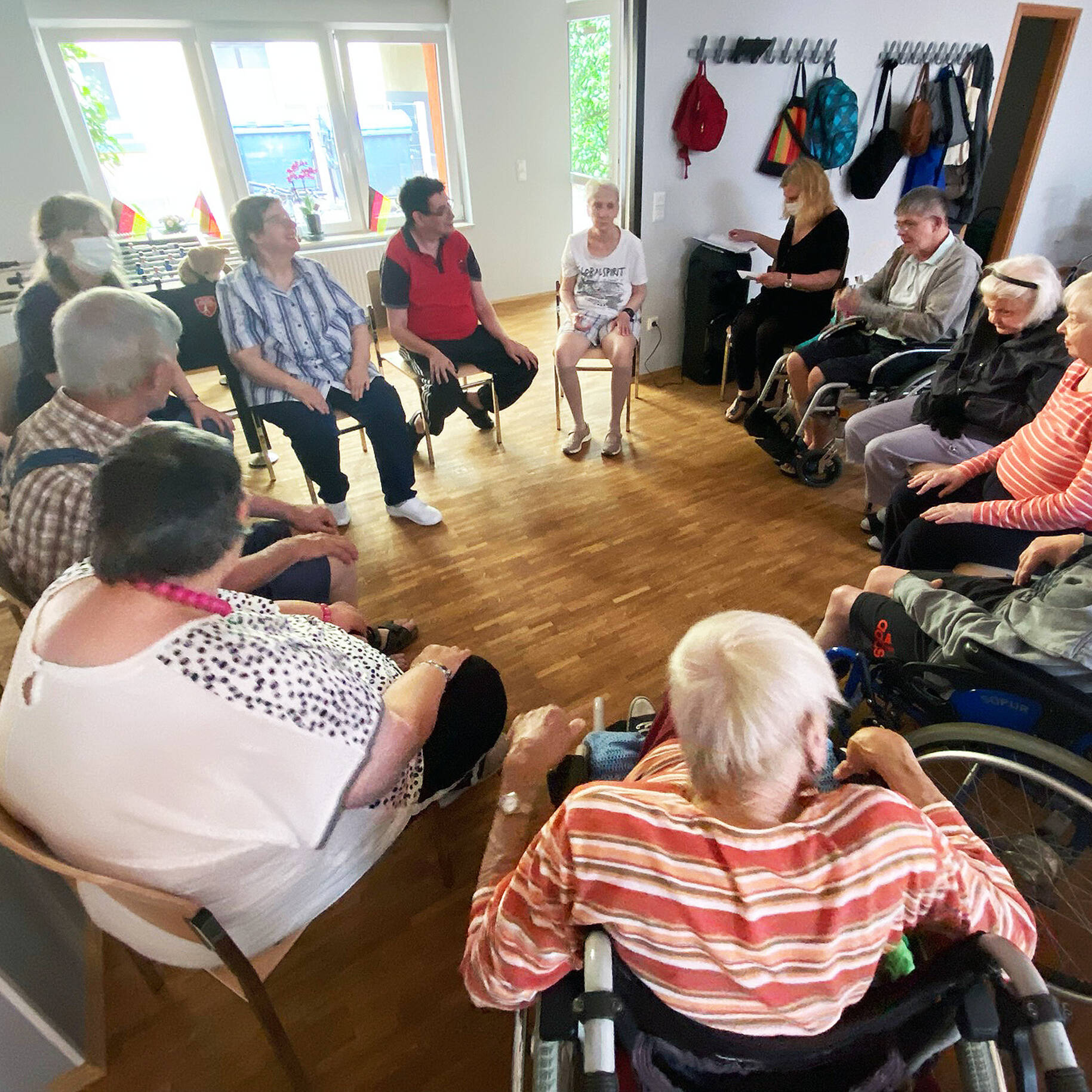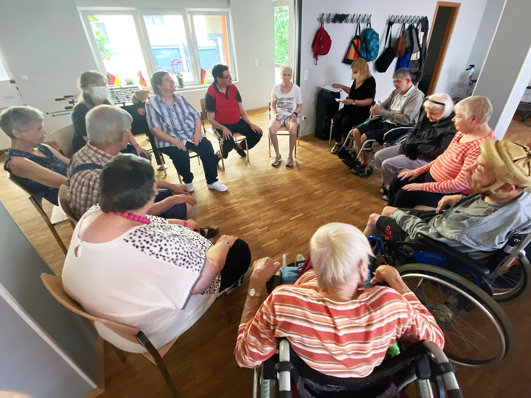 - Bewegungsangebote: Ballspielen, Kegeln, Gymnastikübungen, Sitzgymnastik, Übungen mit dem Schwungtuch