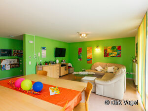 In drei geschlechts- und altersgemischten Wohngemeinschaften leben üblicherweise acht Menschen in Einzelzimmern. Wer möchte kann als Paar zusammen wohnen.